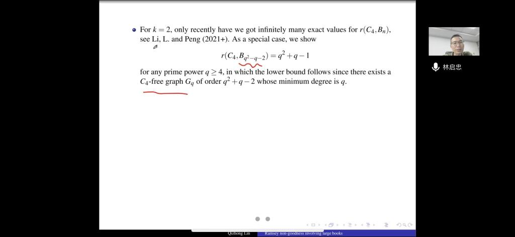 应数学与统计学院与3044永利集团官网邀请,6月4日下午,福州大学林启忠教授在腾讯会议作了题为《Ramsey numbers involving books》的报告。相关师生聆听了此次报告,报告由卢福良老师主持。