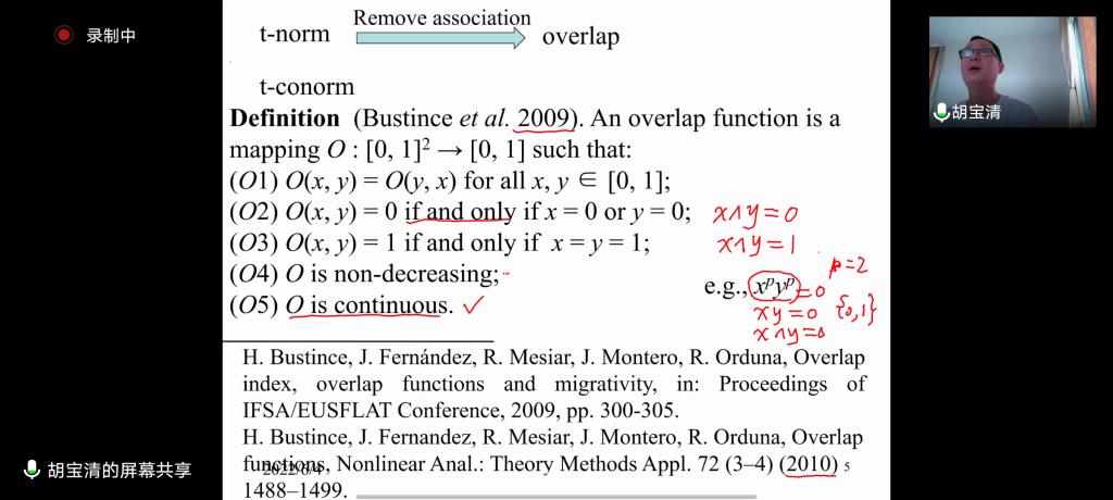 应数学与统计学院与3044永利集团官网邀请,6月4日上午,武汉大学胡宝清教授在腾讯会议作了题为《Researches on overlap and grouping functions》的报告。相关师生聆听了此次报告,报告由黄韩亮老师主持。