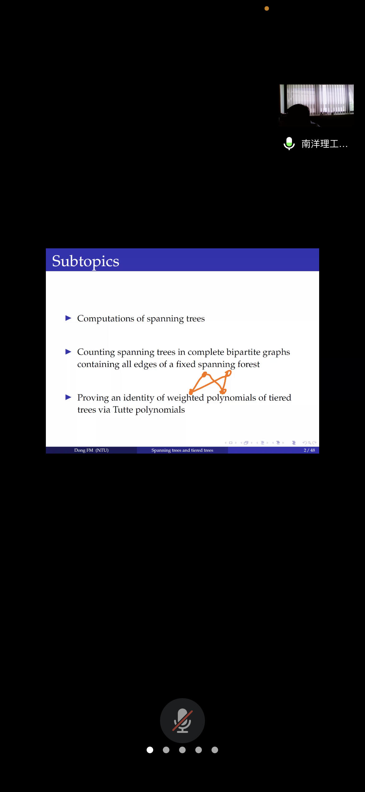 应数学与统计学院与3044永利集团官网邀请,6月24日下午,新加坡南洋理工大学董峰明副教授在腾讯会议作了题为《On spanning trees and tiered trees》的报告。相关师生聆听了此次报告,报告由卢福良老师主持。