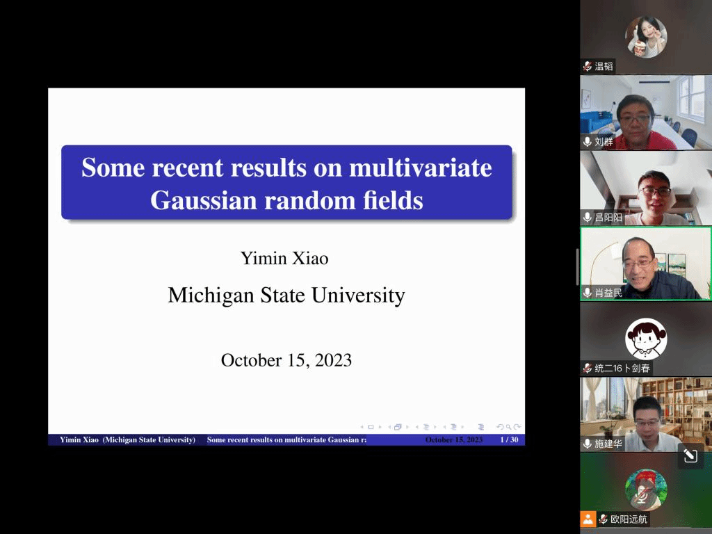 应闽南师范大学数学与统计学院和福建省粒计算及其应用重点实验室邀请,10月15日上午,密西根州立大学肖益民教授在腾讯会议作了题为《Some recent results on multivariate Gaussian random fields》的报告。相关师生聆听了此次报告,报告由施建华老师主持。