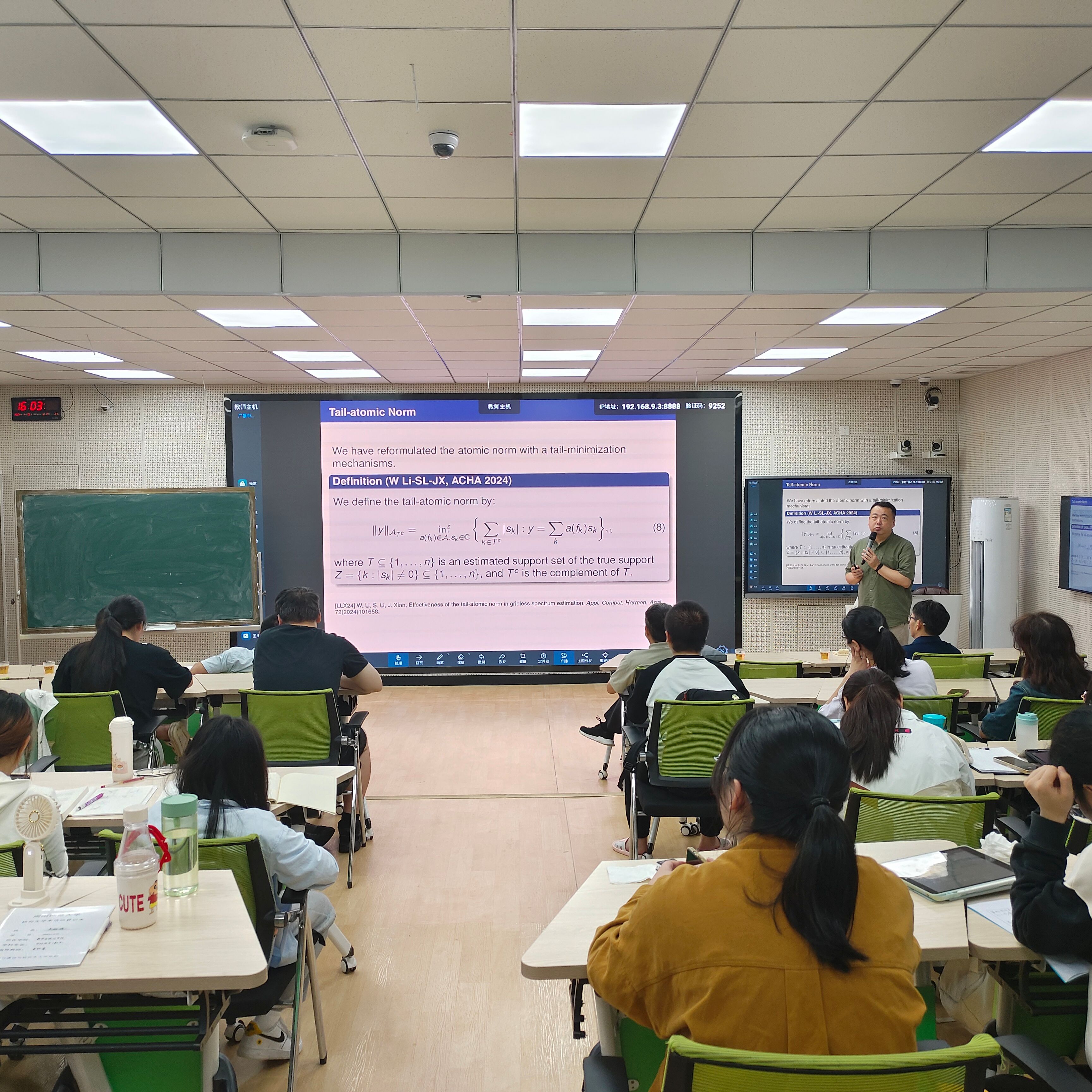 应闽南师范大学数学与统计学院和福建省粒计算及其应用重点实验室邀请,4月25日下午,中山大学冼军教授在砺志楼131作了题为《Effectiveness of the tail-atomic norm in gridless spectrum estimation》的报告。相关师生聆听了此次报告,报告由吴晓锋老师主持。